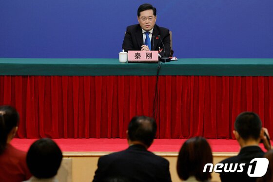 | 친강 중국 외교부장이 7일 전국인민대표대회(전인대) 내외신 기자회견에서 취재진의 질문에 답하고 있다. © 로이터=뉴스1 © News1 강민경 기자 |