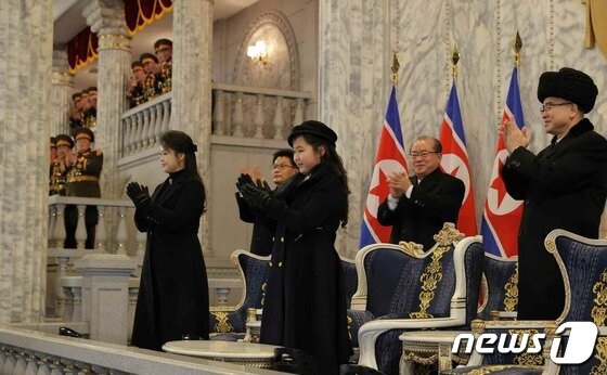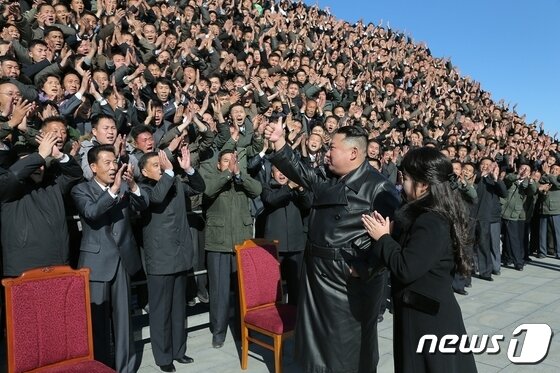(평양 노동신문=뉴스1) = 지난해 11월 신형 대륙간탄도미사일(ICBM) ‘화성-17형’ 시험발사 성공 기념사진 촬영 현장에 동행한 김주애. [국내에서만 사용가능. 재배포 금지. DB 금지. For Use Only in the Republic of Korea. Redistribution Prohibited] rodongphoto@news1.kr