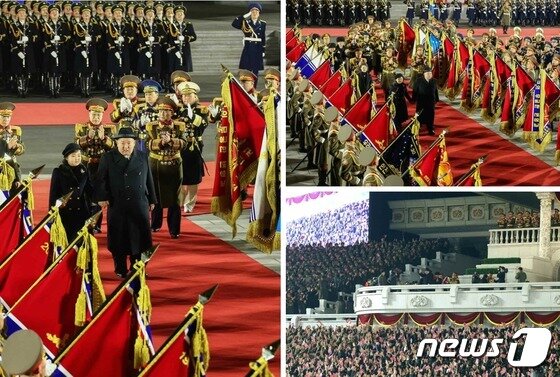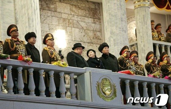 공개된 사진을 보면 김주애는 검은색 롱코트에 짙은 색깔의 빵모자를 쓰고 열병식이 열리는 김일성광장에 도착했다. 그는 군 주요 부대 군기들을 사열하는 김 총비서의 손을 잡고 함께 걷는 등 김 총비서 바로 옆에 자리하며 주석단 뒤편 귀빈석에 자리했다.