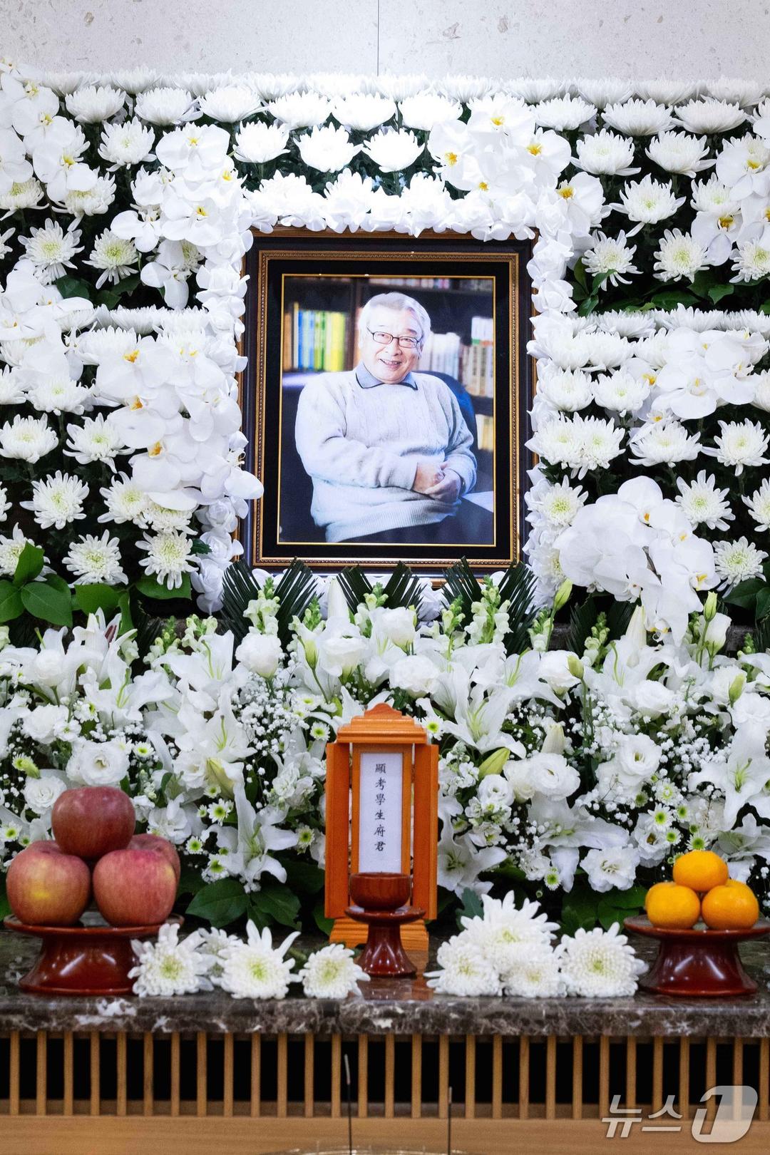 배우 고(故) 이순재가 영정 속 인자한 미소로 먹먹함을 더했다.