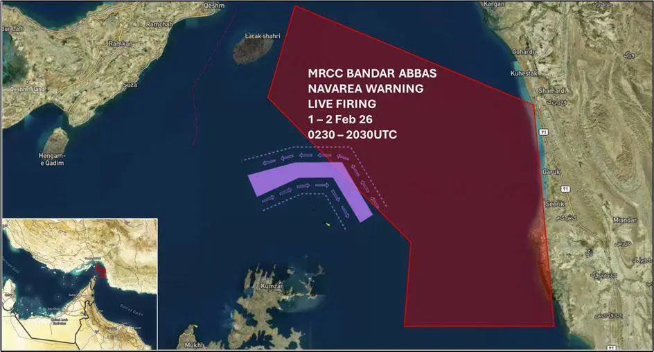 미국의 군사 압박에 대응해 호르무즈 해협에서 긴장 조성에 나설 수 있다는 뜻으로 보인다. 프레스TV가 공유한 항행 경고구역 지도에서는 실사격 훈련이 다음 달 1~2일까지 실시되는 것으로 나타났다.