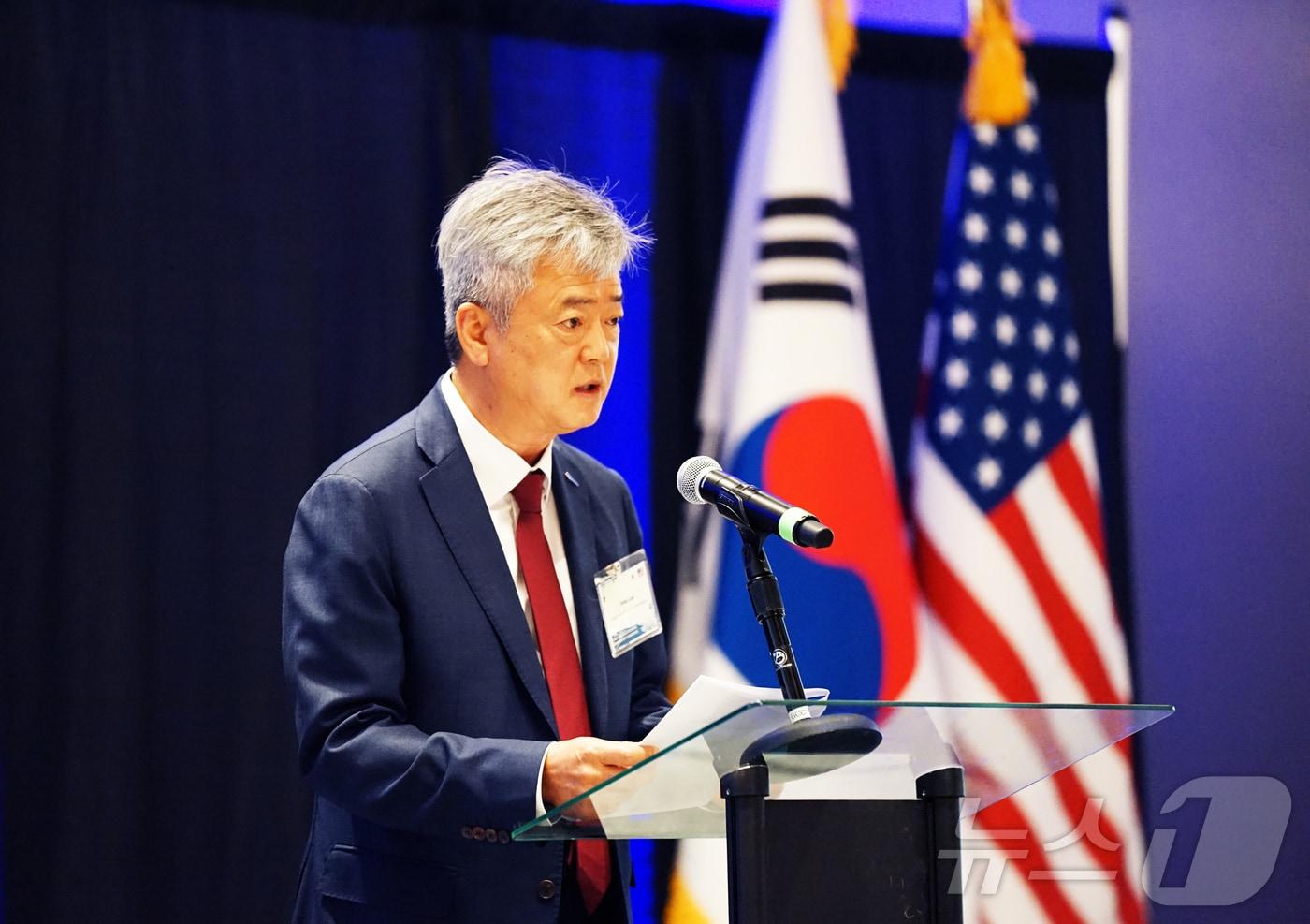 이인호 한국무역협회 부회장이 23일(현지시간) 미국 애틀란타주에서 열린 '한미 동남부 경제협의회 총회'에서 환영사를 하고 있다.(한국무역협회 제공)
