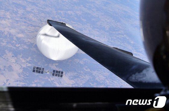 지난 2월 미 국방부가 대서양 상공에서 격추한 중국 정찰 풍선의 사진을 공개했다. U-2 고고도 정찰기에서 촬영된 사진에는 흰색의 둥근 풍선 밑으로 태양열 패널과 안테나가 부착된 비행체의 모습이 보인다. 2023.02.22. (미 국방부 제공) © 로이터=뉴스1 © News1 박재하 기자 |
