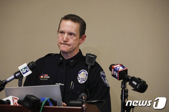 13일(현지시간) 미국 미시간주 이스트랜싱의 미시간주립대학교 캠퍼스에서 총격 사건이 일어나 크리스 로즈만 랜싱 부경찰국장이 기자회견을 하고 있다. 총격으로 5명이 다치고 3명이 숨졌다. © AFP=뉴스1 © News1 박재하 기자