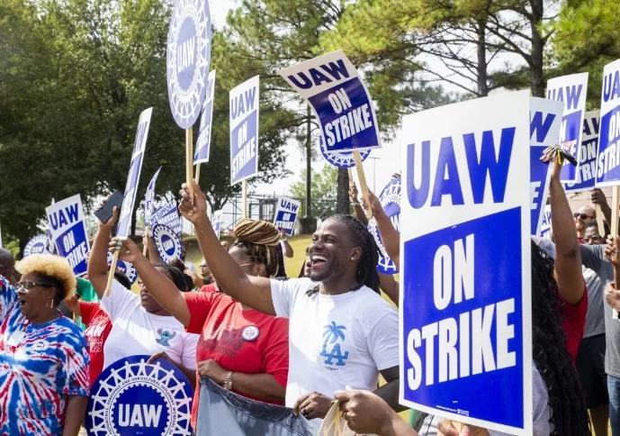 지난 15일부터 진행된 이번 파업은 포드와 제너럴모터스(GM), 스텔란티스(크라이슬러의 모회사) 등 주요 자동차 제조업체들이 임금 인상·근로조건 개선을 요구하며 벌인 최초의 공동 파업이다. 미국 3대 자동차 제조사 공장에서 노조가 동시 파업에 나선 것은 이번이 처음이다.
