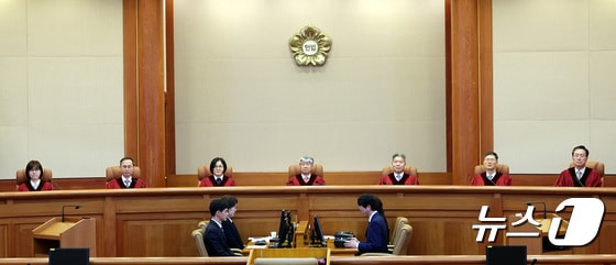 25일 헌법재판소 대심판정에서 민법 제1112조 등 유류분 제도에 대한 위헌법률심판 및 헌법소원 선고가 진행되고 있다. 2024.4.25/뉴스1 © News1 박지혜 기자 |