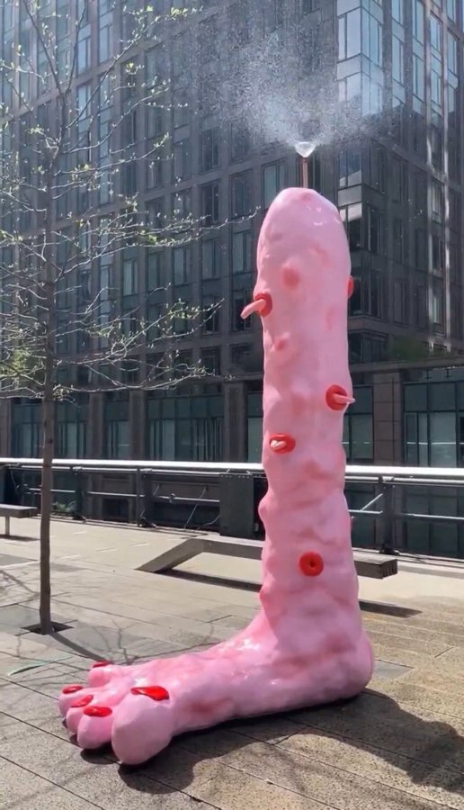 1일(현지시간) 뉴욕포스트에 따르면 뉴욕 하이라인공원에는 ‘발 분수'(Foot Fountain)라는 이름의 약 3m 높이의 분홍색 조형물이 지난 4월 설치됐다. 이 조형물은 아르헨티나 출신의 예술가인 미카 로텐베르그가 만들었다.
