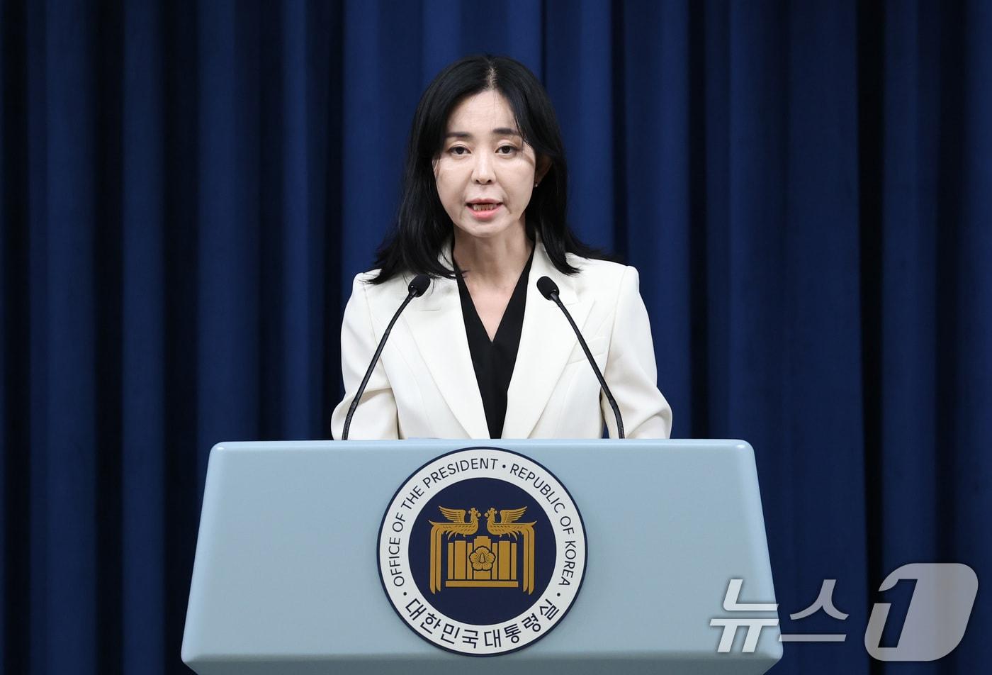정혜전 대통령실 대변인이 2일 서울 용산 대통령실 청사 브리핑룸에서 현안 브리핑을 하고 있다. 2024.8.2/뉴스1 ⓒ News1 박지혜 기자