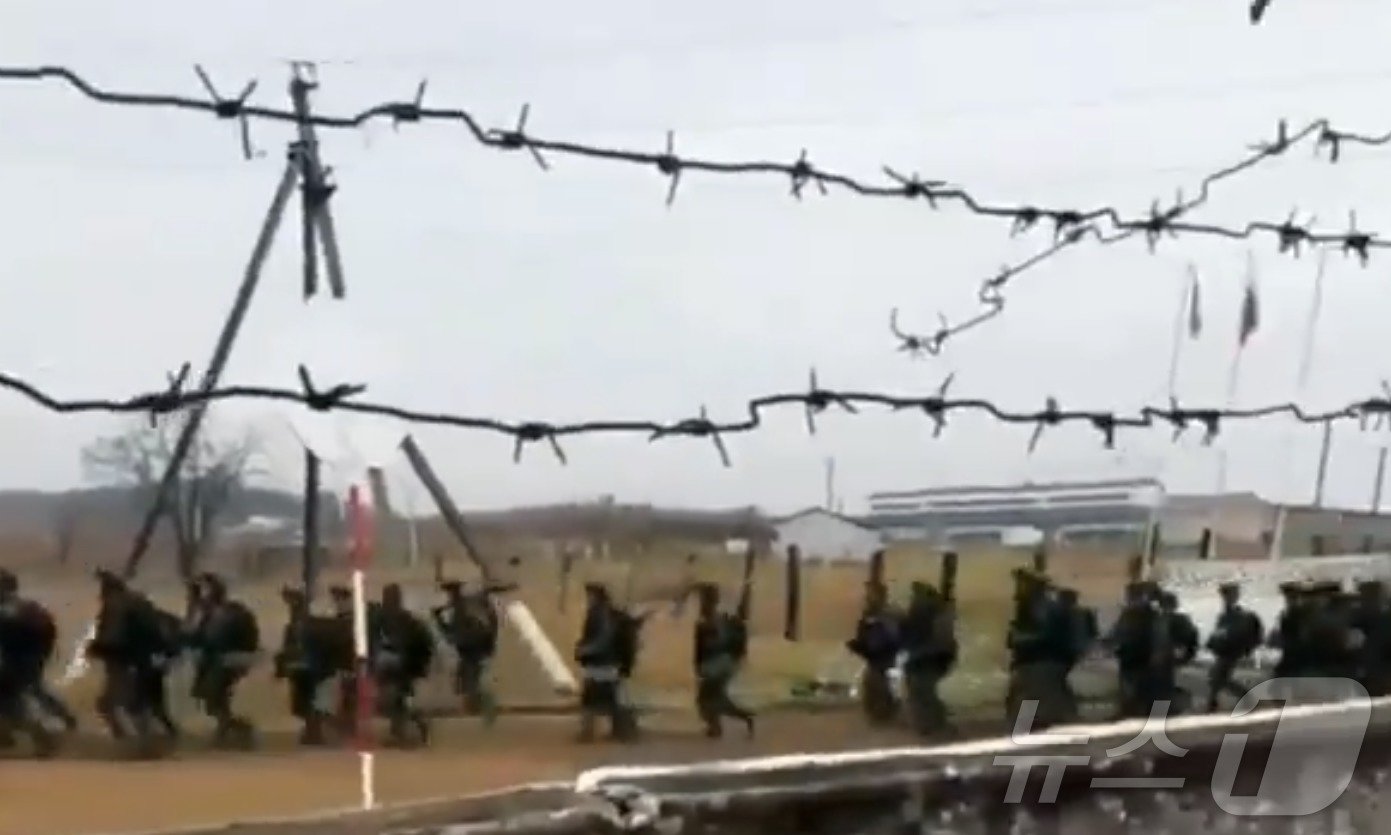 18일(현지시간) 공개된 러시아 훈련장에 도착하고 있는 북한군으로 추정되는 군 병력. 사진은 러시아 매체 시레나의 X(옛 트위터) 계정 영상 갈무리. 2024.10.18 ⓒ News1 김지완 기자