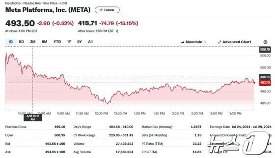 이날 메타는 장 마감 직후 실적을 발표했다. 메타는 실적 발표에서 시장의 예상을 상회하는 매출과 주당 순익을 발표했다.