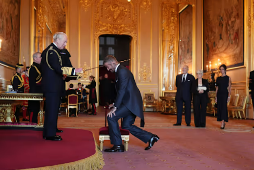 AP통신 보도에 따르면 영국 축구 스타 데이비드 베컴(50)이 마침내 ‘서(Sir)’라는 칭호를 얻게 됐다. 찰스 3세 국왕은 11월 4일(현지시간) 윈저성(Windsor Castle)에서 열린 공식 행사에서 베컴의 양 어깨에 검을 얹으며 기사 작위를 수여했다.