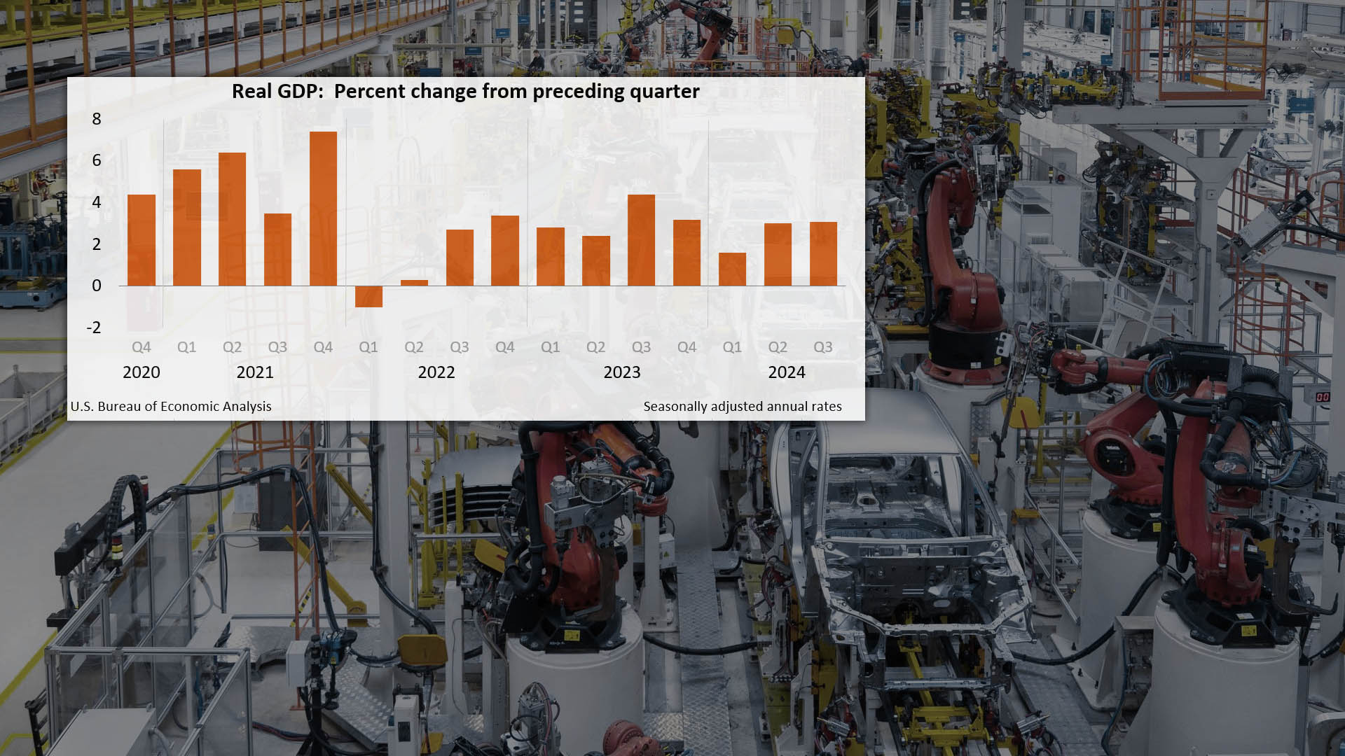 미국의 3분기 국내총생산(GDP) 증가율(확정치)이 3.1%로 나타났다. 잠정치였던 2.8%를 웃돌며 여전히 강한 성장세를 이어가고 있다.