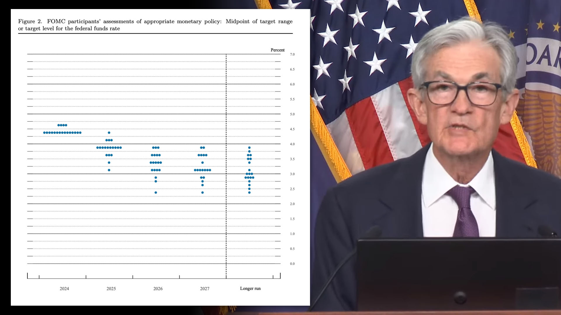 연준이 내년 금리를 이전보다 높게 전망하면서 뉴욕증시는 급락했다. 다우존스 산업평균지수는 1123.03포인트(2.58%) 밀려 4만2326.87을 나타냈다. 다우지수는 10거래일 연속 떨어져 1974년 10월 이후 최장 기간 약세를 보였다. 월가 공포를 보여주는 CBOE 변동성 지수는 8.0포인트 상승하여 4개월래 최고치인 23.87을 기록했다.