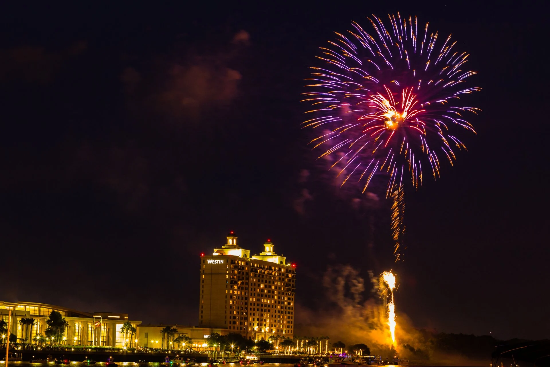 하버 타운, 셸터 코브, 콜리니 플라자 등 각기 다른 명소에서 펼쳐지는 다채로운 불꽃.
