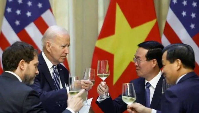 이 베트남 수도 하노이를 국빈 방문해 양국 관계를 ‘포괄적 전략 동반자 관계’로 격상한 지 한 달여만에 이뤄졌다. 당시 바이든 대통령은 베트남과 새로운 공급망 구축과 반도체 산업 협력에 합의하며 중국 견제 행보를 보였다.