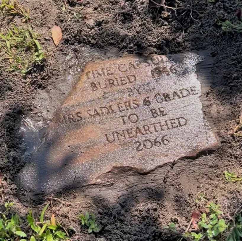 올해 9월 9일, 교직원과 졸업생들이 모여 표지석이 있는 부지를 재조사한 결과, 흙과 잔디 아래에 있던 표지석이 다시 드러났다. 표지석에는 “1966년 매장, 새들러 교사의 6학년, 2066년 개봉 예정(Time Capsule, Buried 1966, Mrs. Sadler’s 6th Grade, To be Unearthed 2066)”이라는 문구가 선명히 남아 있었다.