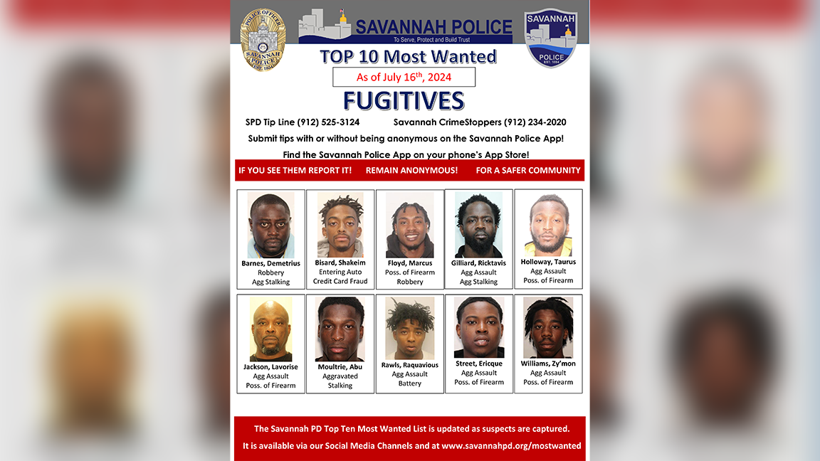 ‘지명수배 상위 10인’ 명단은 사바나 경찰국 공식 웹사이트에서 확인 가능하다.