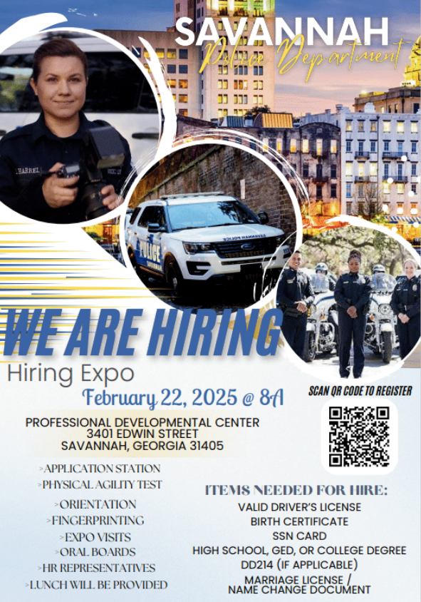 WSAV-사바나 경찰국(SPD)이 인력난 해소를 위해 채용 박람회를 개최하고 급여 인상을 추진하고 있다.