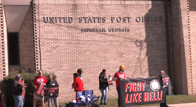 WSAV 보도에 의하면, 22일 오전 사바나 본우체국 앞에서 전국우편집배원노조 지부 578 소속 집배원 수십 명이 공정한 보상 체계를 요구하는 집회를 열었다.