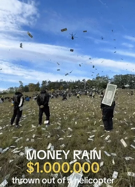 “세계 최초 진짜 돈벼락”…유명 인플루언서, 하늘서 13억 현금 뿌렸다