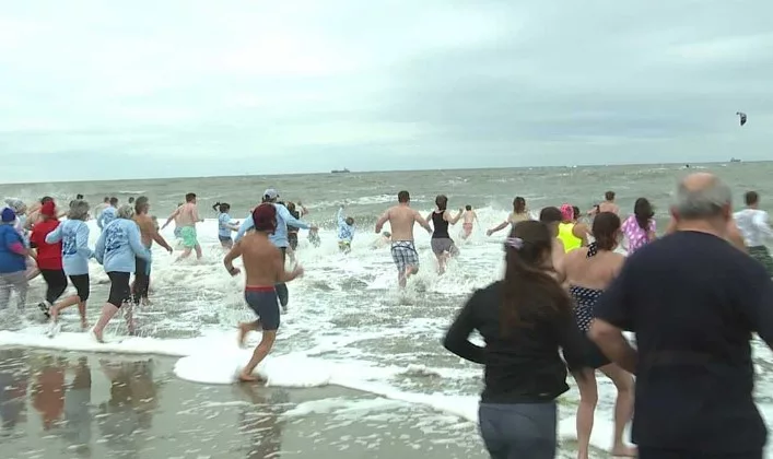 수천 명의 사람들이 월요일 대서양에 몸을 담그고 새해를 맞이했다.