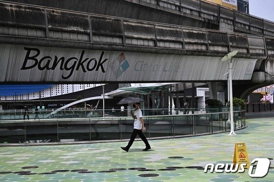 태국이 40도를 웃도는 기록적인 폭염에 시달리고 있는 가운데 19일(현지시간) 방콕에서 한 시민이 양산을 쓰고 있다. 지난 15일 태국 서부 딱주의 기온은 역대 최고인 섭씨 45.4도를 기록했다. © AFP=뉴스1 © News1 박재하 기자 |