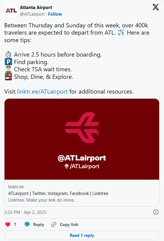 세계에서 가장 분주한 공항 중 하나인 하츠필드-잭슨 애틀랜타 국제공항(Hartsfield-Jackson Atlanta International Airport)이 이번 주, 사상 유례없는 봄철 여행객 몰이에 대비하고 있다.