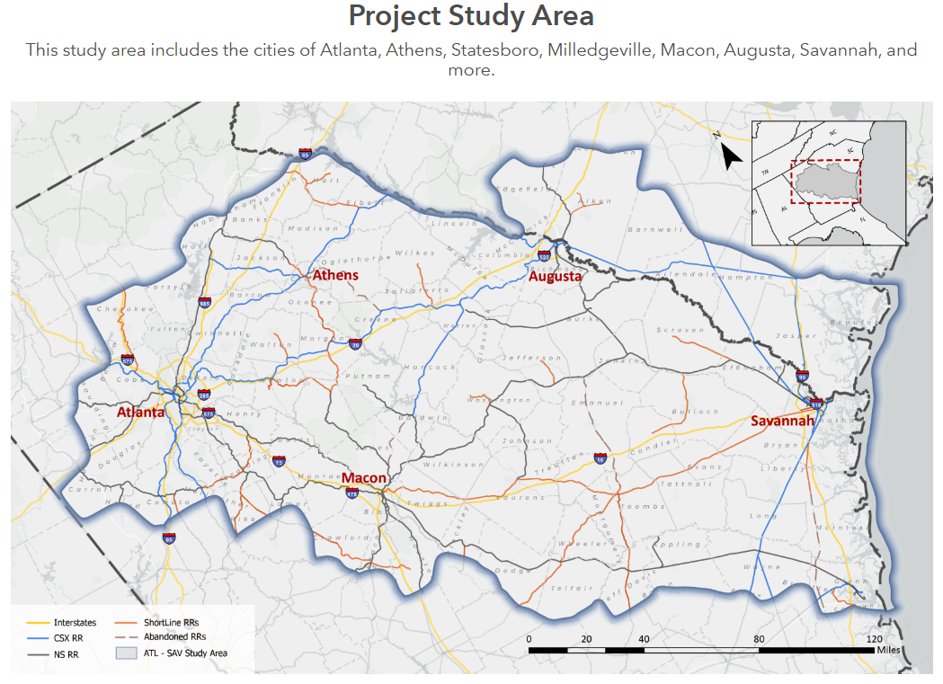 이번 설문은 애틀랜타–사바나 구간뿐 아니라 오거스타, 메이컨, 아테네 등 잠재적 정차 도시와의 이동 빈도, 목적(업무·행사·가족 방문 등)에 대해서도 묻는다.