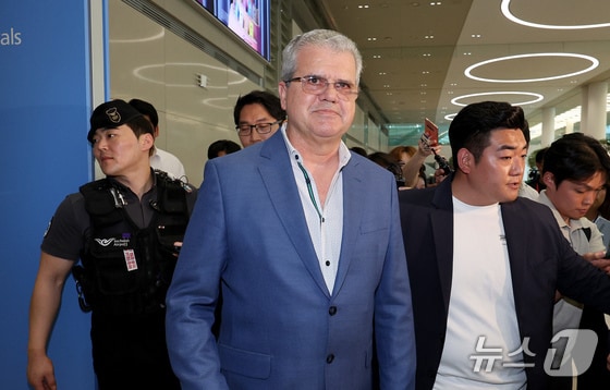 당초 예정된 시간보다 15분여 늦게 입국장에 모습을 드러낸 아브레우 고문은 쏟아지는 기자들의 질문에도 2분여에 걸쳐 질의응답을 받은 뒤 한국석유공사 관계자들의 안내를 받으며 신속히 공항을 빠져나갔다.