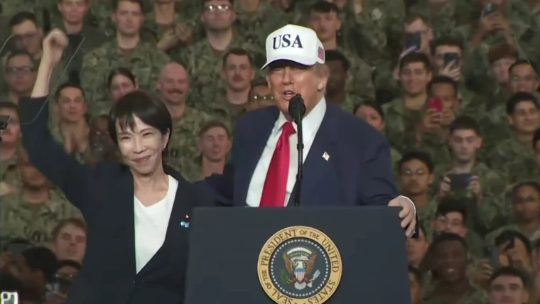 두 정상은 늦은 오후까지 일정을 함께했다. 트럼프 대통령은 다카이치 총리와 마린원(미 대통령 전용 헬기)을 함께 타고 주일 미군 요코스카 기지의 핵 항공 모함 조지워싱턴호를 시찰했다.