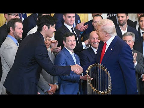 2024 메이저리그(MLB) 월드시리즈 챔피언인 LA 다저스 선수단이 백악관에서 도널드 트럼프 대통령을 만났다. 트럼프 대통령은 슈퍼스타 오타니 쇼헤이에게 “배우 같다”며 감탄했고 한국계 미국인 토미 현수 에드먼에게는 “재능이 많다”며 칭찬했다.
