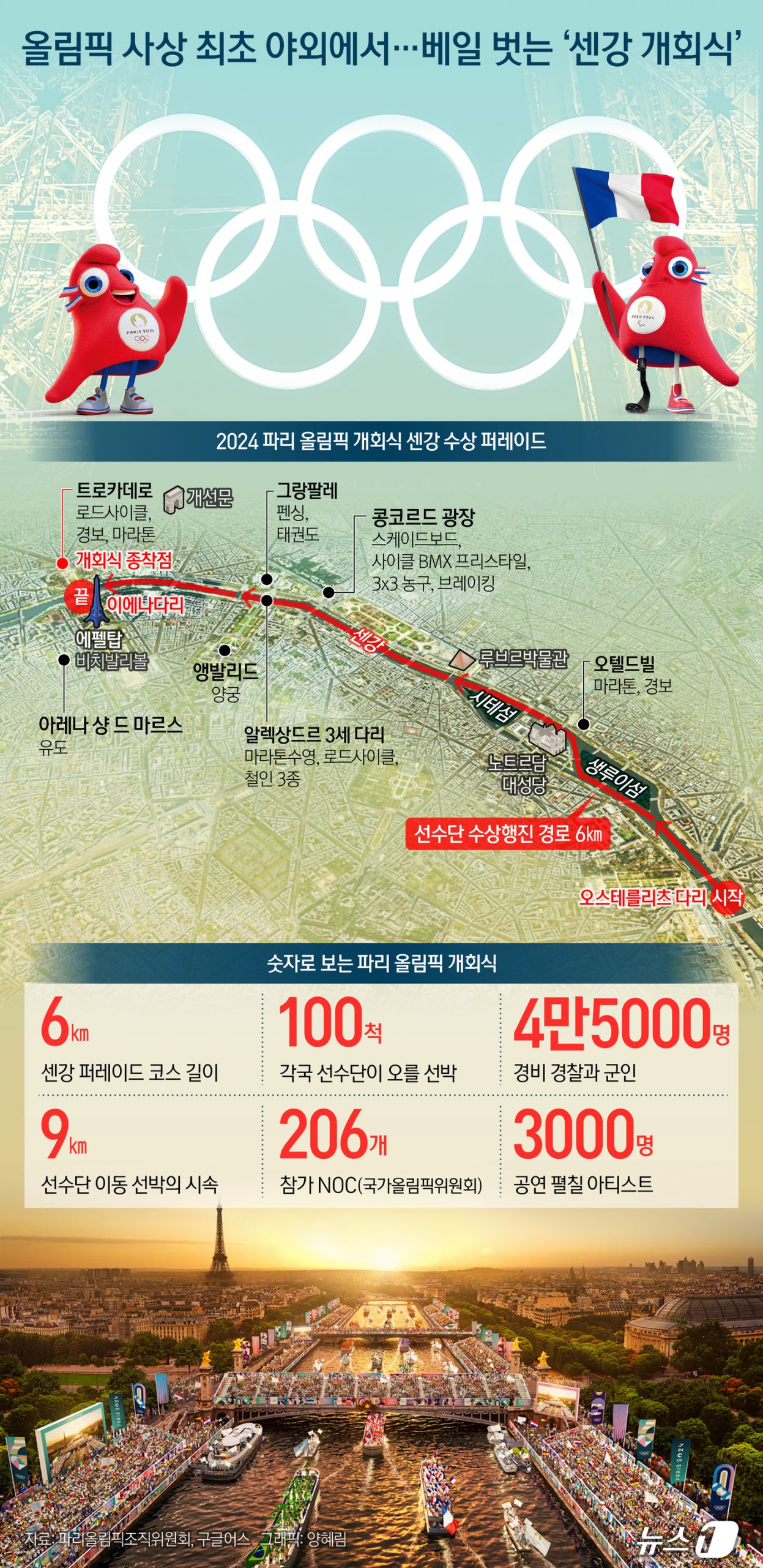 올림픽 사상 첫 야외 개막식…베일 벗는 ‘파리 센강 퍼레이드’