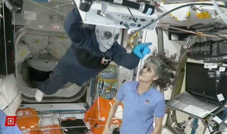 우주선 안에 회색을 띤 조붓한 외계인 얼굴이 나타나 미 항공우주국(NASA·나사)의 실시간 영상을 보던 이들을 잠시 놀라게 했다. 삭막한 우주공간에서 동료에게 웃음을 선사하기 위한 조그만 선물이다. 나사 우주인들은 핼러윈 때를 포함해 가끔 슈퍼맨이나 스파이더맨, 마리오 형제 등으로 분장해 장난을 치곤 한다.