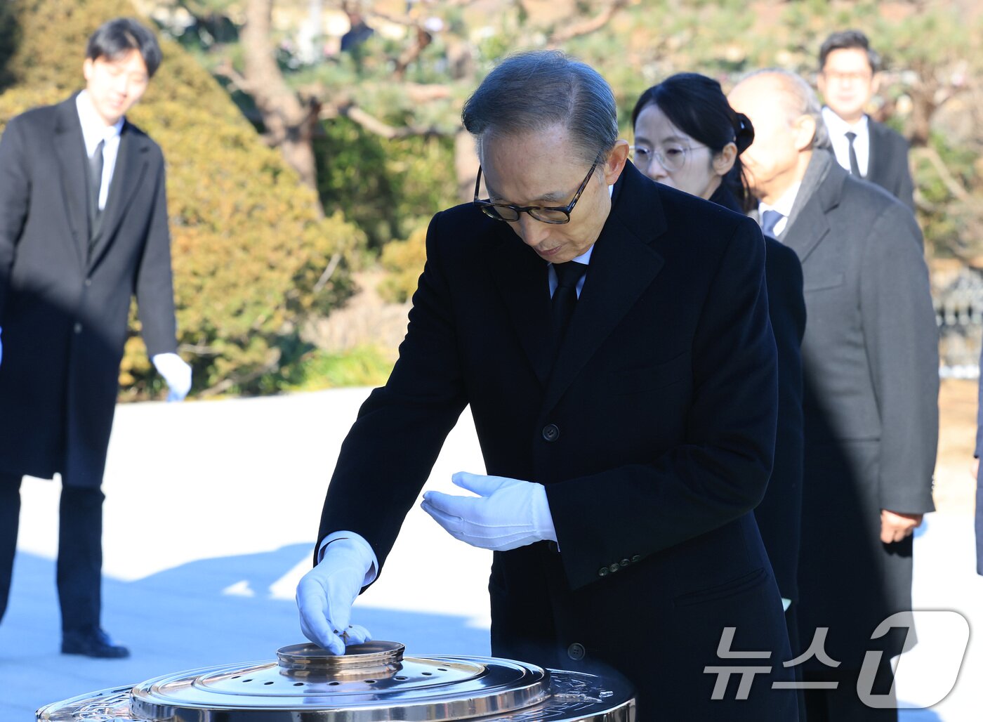 이명박 전 대통령이 새해 첫 날인 1일 서울 동작구 국립서울현충원에서 현충탑에 분향하고 있다.