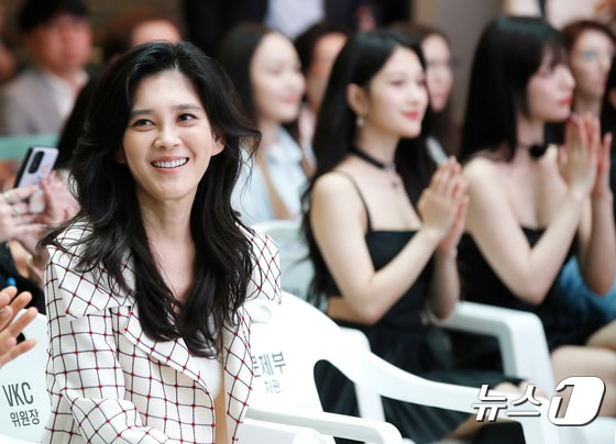 이학재 인천공항공사 사장(왼쪽 세번째부터)과 이부진 한국방문의해위원회 위원장, 장미란 문화체육관광부 제2차관이 26일 인천공항 1터미널 밀레니엄홀에서 열린 ‘한국방문의 해 환영주간 개막식’에서 프로미스나인의 공연을 보며 미소를 짓고 있다. 2024.4.26/뉴스1 © News1 권현진 기자 |