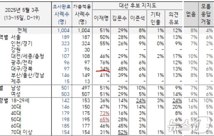 주목할 지점은 이 후보의 TK와 70대 이상 지지율.