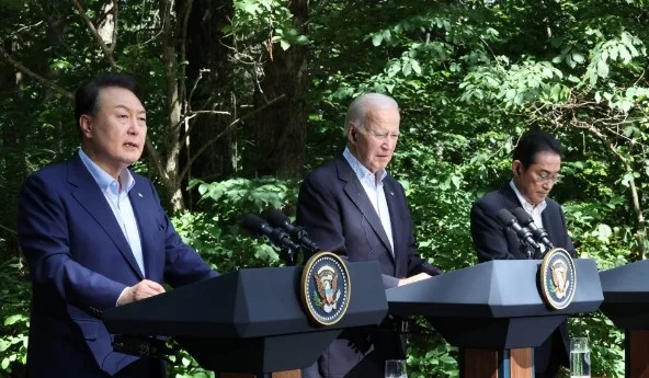 그 후 3국 지도자들이 물갈이되며 조금씩 지형이 바뀌었다. 미국은 공화당에서 민주당 바이든 정권으로 교체됐고, 한국은 문재인 정권에서 윤석열 정권으로, 일본은 아베 내각에서 스가 내각을 거쳐 기시다 내각으로 바뀌었다. 정권의 변화는 곧 한일 관계의 변화로도 이어졌다.
