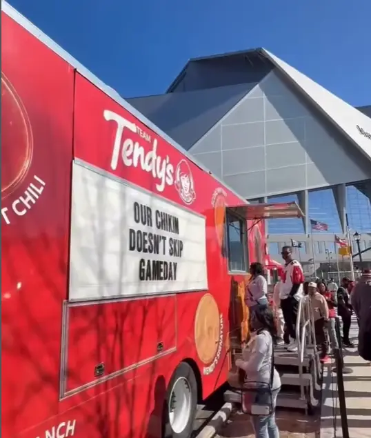 이를 기회로 본 웬디스는 1월 4일, 팰컨스와 뉴올리언스 세인츠의 홈경기 당일 경기장 외부에 푸드트럭을 배치했다. 트럭 외벽에는 치킨 텐더 이미지가 크게 부착됐고, 웬디스는 소셜미디어를 통해 “상대가 쉬는 날에도 우리는 애틀랜타를 위해 나왔다”는 메시지를 던졌다.