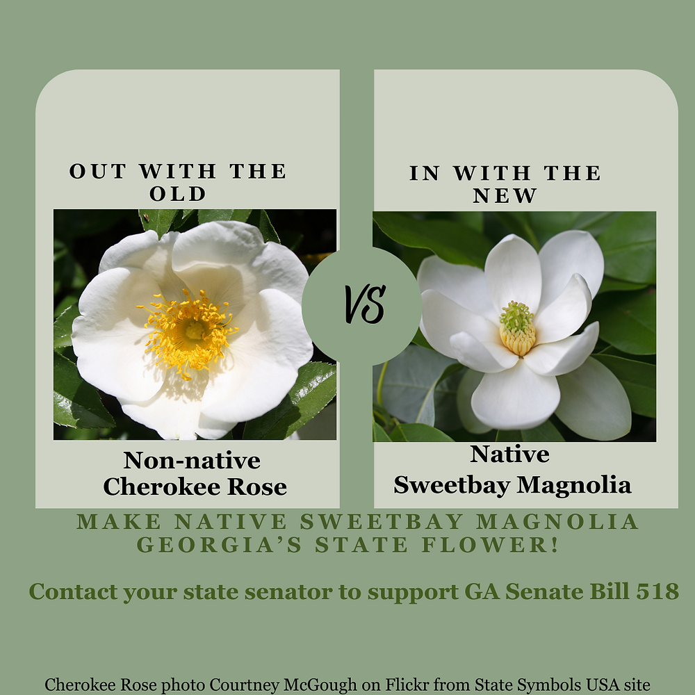 조지아 상원은 상원법안 240(SB240)을 통과시켜 현재 주 꽃인 체로키 로즈 대신 스위트베이 매그놀리아를 새로운 주 꽃으로 지정하는 방안을 추진하고 있다.