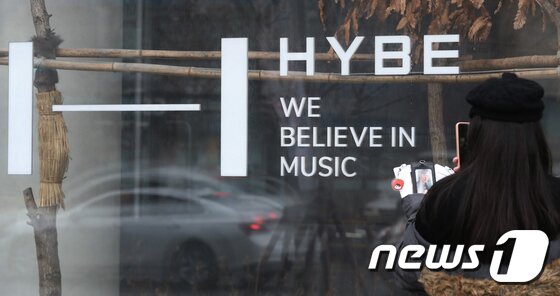 그룹 방탄소년단(BTS)을 배출한 가요 기획사 하이브가 SM엔터테인먼트를 전격 인수한다. 하이브는 이수만 SM 대주주가 보유한 지분 14.8%를 4228억 원에 인수한다고 10일 공시했다. 이에 따라 SM의 최대 주주로 등극하게 된다. 아울러 하이브는 SM 소액 주주가 보유한 지분 공개매수에도 나선다고 밝혔다. 사진은 이날 서울 용산구에 위치한 하이브 사옥 모습. 2023.2.10/뉴스1 © News1 송원영 기자