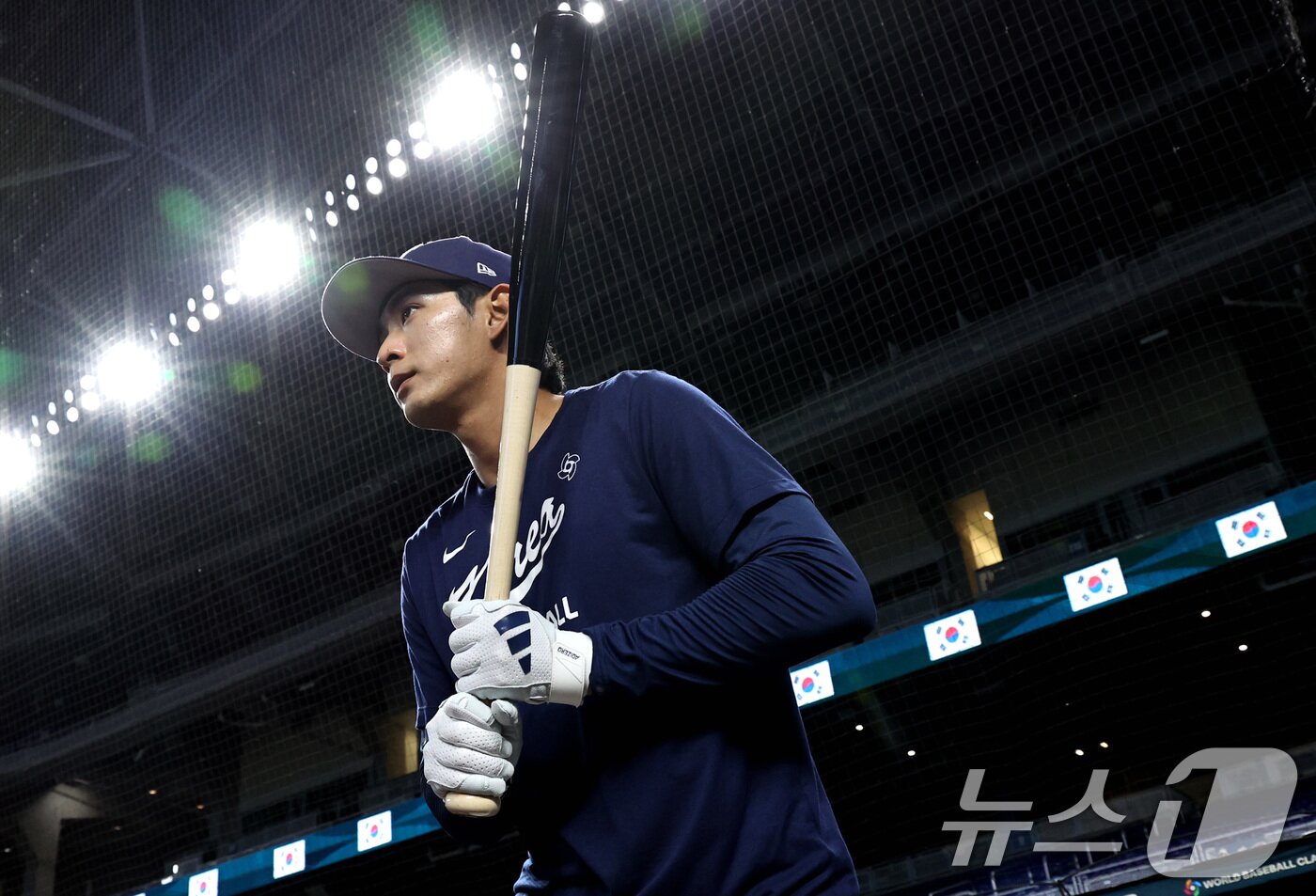 본문 이미지 - 대한민국 야구대표팀 이정후가 12일 오후(현지시간) 미국 플로리다주 마이애미 론디포파크에서 2026 월드베이스볼클래식(WBC) 도미니카공화국과의 8강전을 하루 앞두고 타격훈련을 하고 있다. 2026.3.13 ⓒ 뉴스1 구윤성 기자