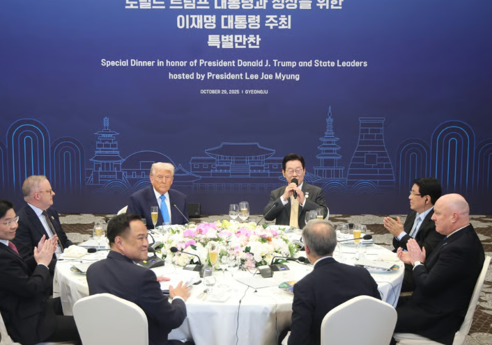 앞서 이 대통령은 전날 국립경주박물관에서 열린 한미 정상회담 확대 오찬 모두발언에서 “핵추진잠수함의 연료를 공급받을 수 있도록 트럼프 대통령께서 결단해 주시면 좋겠다”라고 말했다.