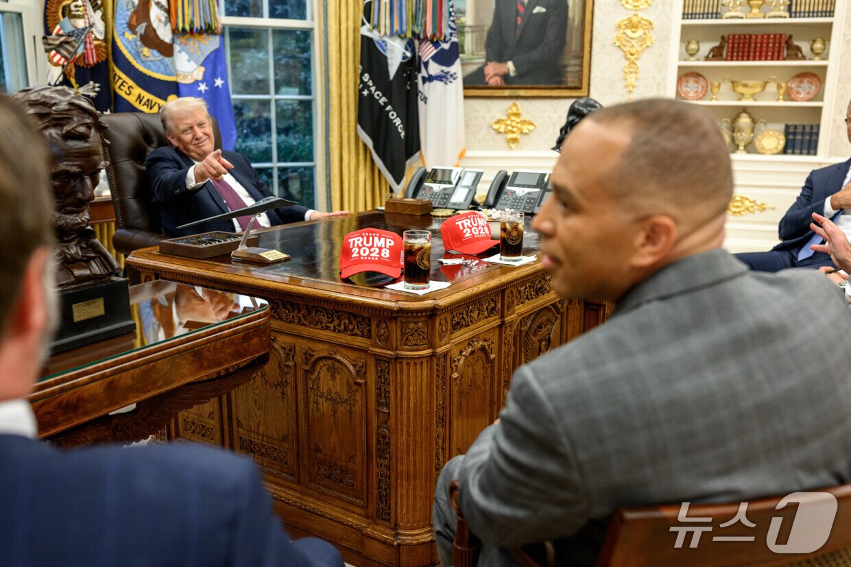 1일(현지시간) USA투데이·더힐 등에 따르면 트럼프 대통령은 이날 소셜미디어 트루스소셜에 워싱턴DC 백악관 집무실에서 집권 공화당의 마이크 존슨 하원의장과 존 슌 상원 원내대표, 민주당 소속 척 슈머 상원 원내대표와 하킴 제프리스 하원 원내대표 등 양당 지도부와 만난 당시의 사진들을 게시했다. 회동은 지난달 29일 이뤄졌다.