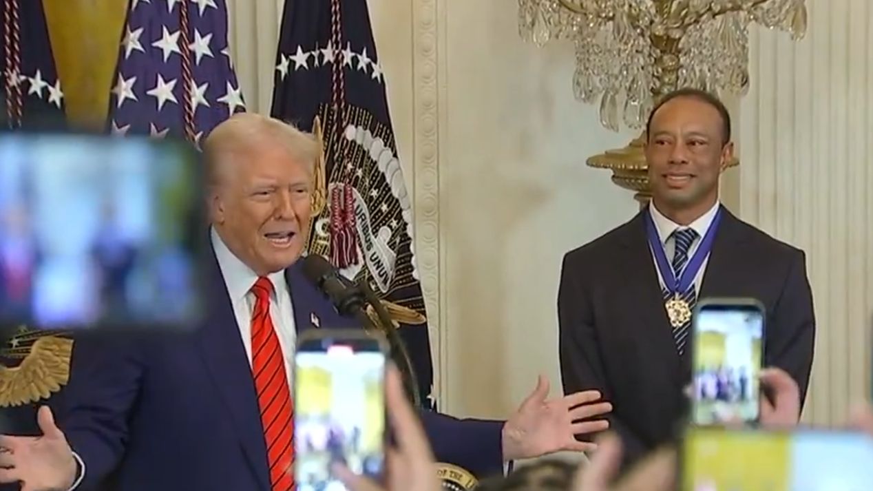 훈장을 받은 타이거 우즈는 “대통령과 이 자리에 함께하게 돼 영광”이라며 “여러분 모두에게 감사드린다”라고 했다.