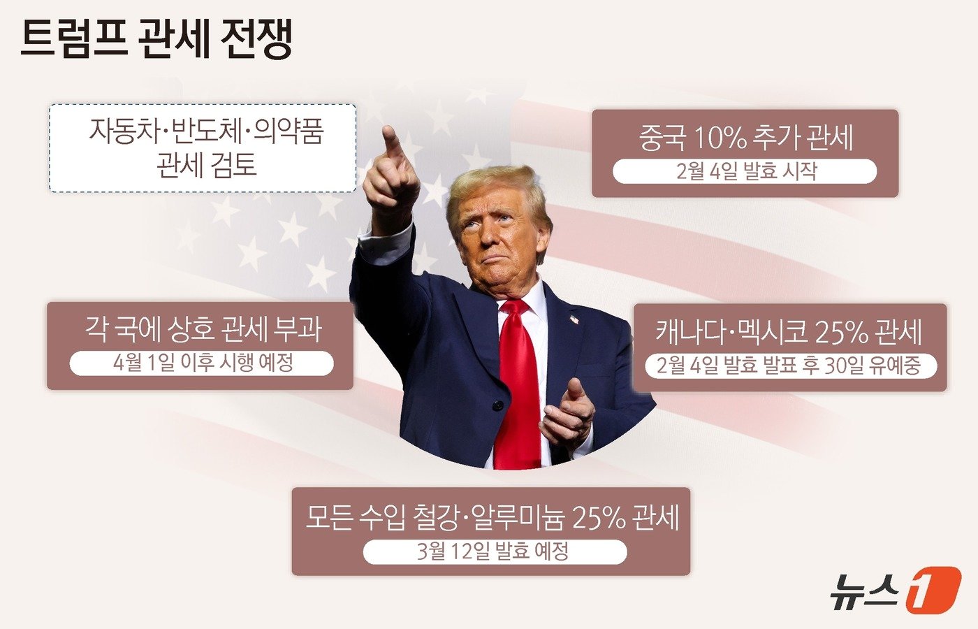10일에는 모든 수입산 철강 및 알루미늄에 대한 25% 관세 부과 행정명령에 서명했다. 이 관세는 3월 12일부터 적용된다. 지난 13일에는 본인이 “오늘은 큰 것(big one)이 온다”며 큰 의미를 부여한 상호관세 행정명령 서명이 이뤄졌다. 4월 1일 이후 시행 예정이다.