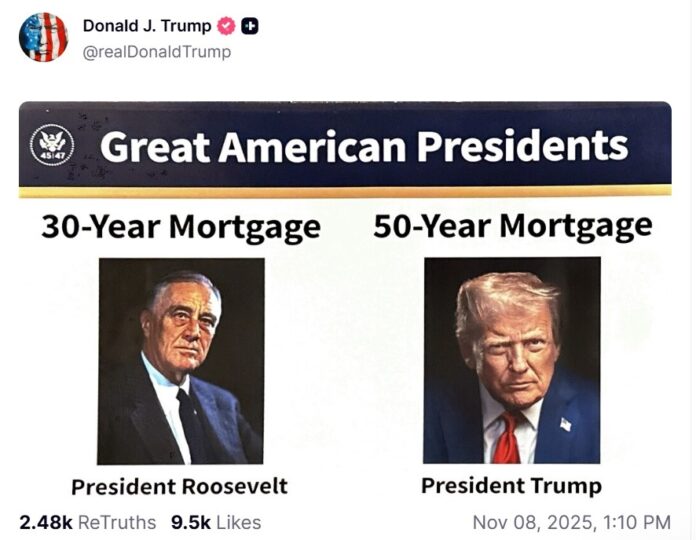 더힐(The Hill)의 보도에 의하면, 미국 연방주택금융청(FHFA) 빌 펄티(Bill Pulte) 국장은 11월 8일(토), 트럼프 행정부가 “50년 상환 주택담보대출(50-year mortgage)” 도입을 준비 중이라고 공식 확인했다.