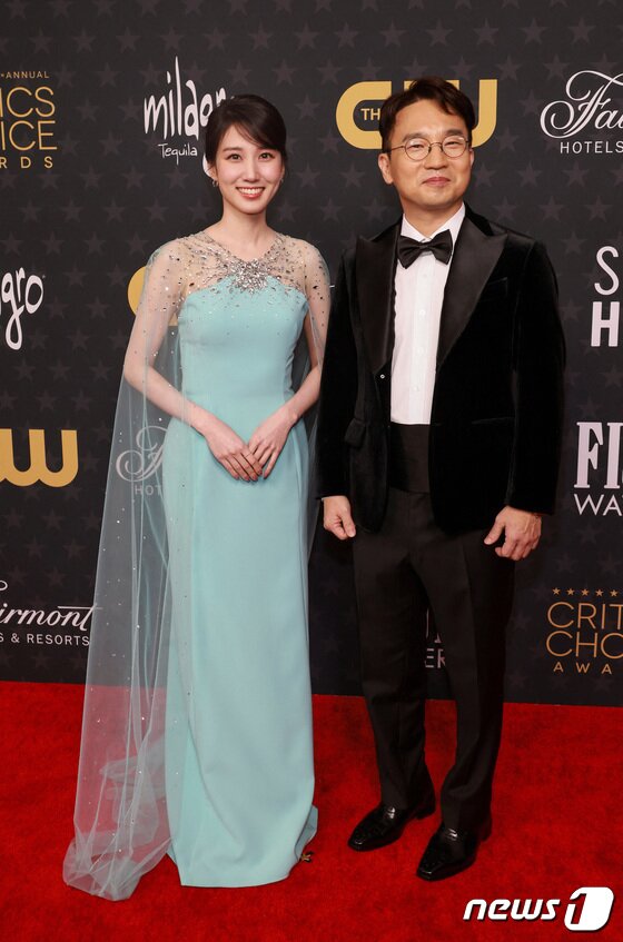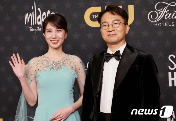 ‘이상한 변호사 우영우’의 배우 박은빈과 유인식 감독이 15일 (현지시간) 캘리포니아주 로스앤젤레스 페어몬트 센츄어리 플라자 호텔에서 열린 제28회 크리틱스 초이스 어워즈 레드카펫서 포즈를 취하고 있다. © 로이터=뉴스1 © News1 우동명 기자