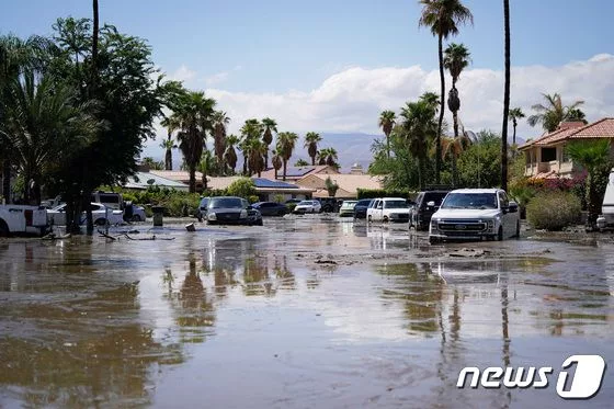 인접한 네바다주의 산악지대 리 캐년에는 무려 220㎜가 쏟아져 1906년 종전 최대 강수 기록(110㎜)을 큰 폭으로 경신했다. 매마른 사막지대인 데스밸리 국립공원에도 매우 이례적으로 빗방울이 떨어져 42㎜가 쌓였다.