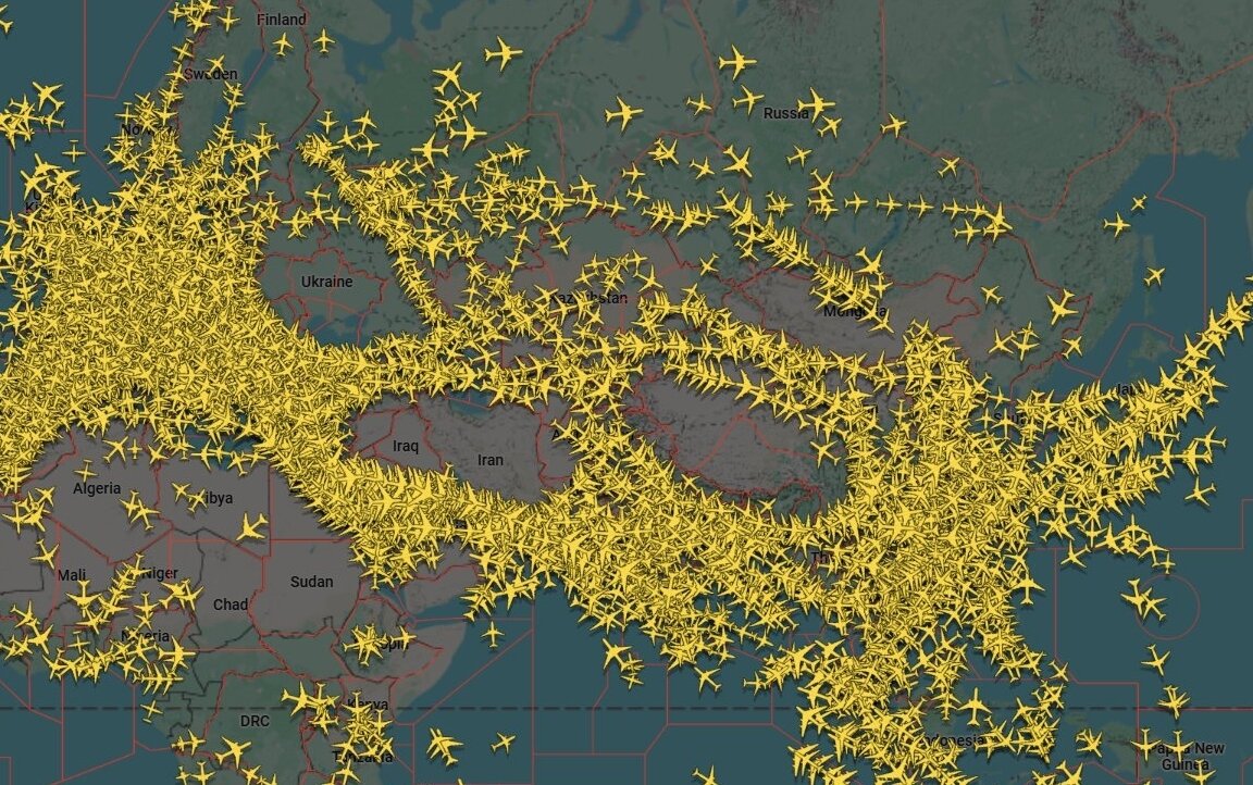 지구촛 곳곳에서 전쟁의 일상화로 항공기들이 분쟁 지역을 우회하면서 하늘에 마치 커다란 구멍이 여럿 뚫린 것 같은 현상이 빚어지고 있다.