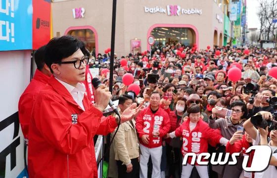 한동훈 국민의힘 비상대책위원장 겸 총괄선거대책위원장은 2일 대전 서구에서 선거 유세를 이어가던 중 욕설을 퍼붓는 시민을 제지하려던 경찰에 “그냥 얘기하라고 하라. 괜찮다”며 만류했다.